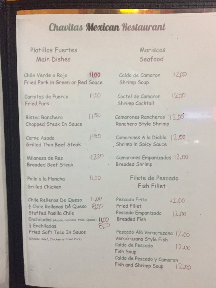 Chavitas mexican restauran Menu (Update 2025)
